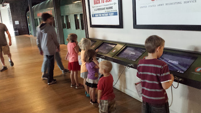 We didn't take many pictures in the museum because somehow it just felt weird to. Irreverent, almost. It wasn't forbidden; it just didn't feel right. We rode the train, which showed us videos of new recruits riding on the train going to boot camp. Excitement, fear, anxiety. The kids were excited to use the phones after the train ride.